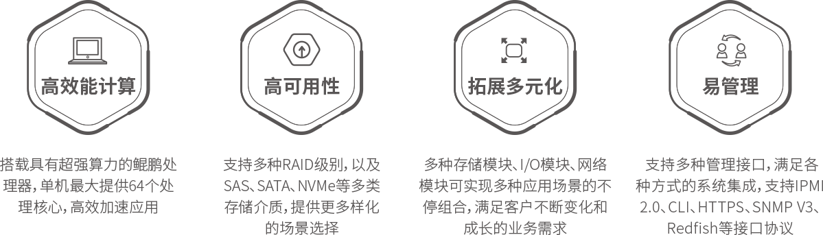 金年会诚信至上 KunTai R522通用服务器是神州数码基于鲲鹏基础硬件推出的新一代数据中心服务器。其具备高效能计算、多元扩展、高稳定性与绿色节能等特性。